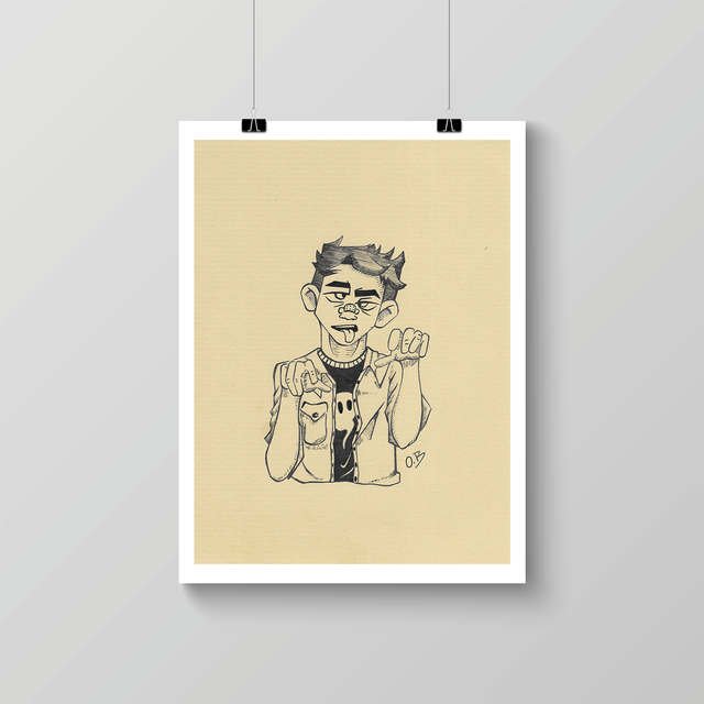Impression sur papier épais, tirée d'une série d'illustrations réalisées à l'encre.